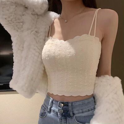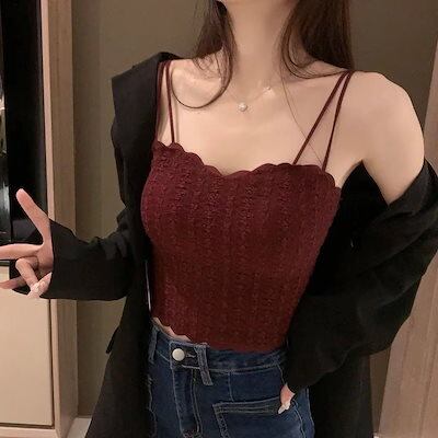 2024 人気 カップ付きインナー セクシー レース スリミング 着痩せ 百掛け 高級感 ストラップレスブラ 個性 チェストパッド付き タンク キャミソール タンクトップ ヨガ 美背 レディース