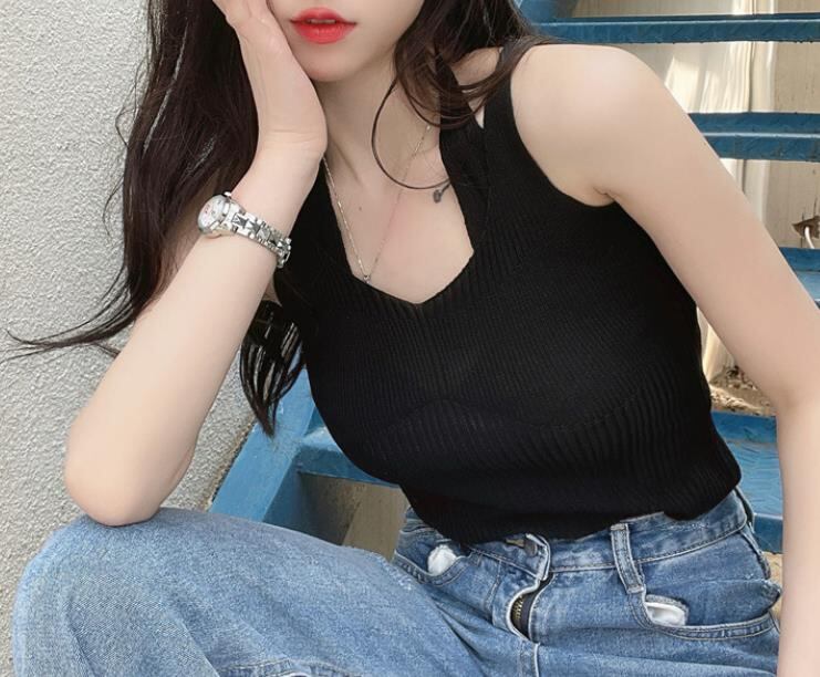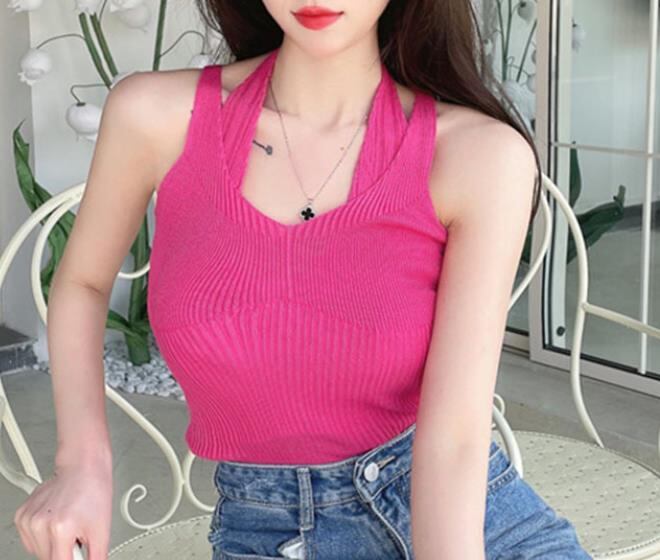 春夏新作 レディース 女 袖なし 無地 ニット トップス Tシャツ インナー キャミソール タンクトップ