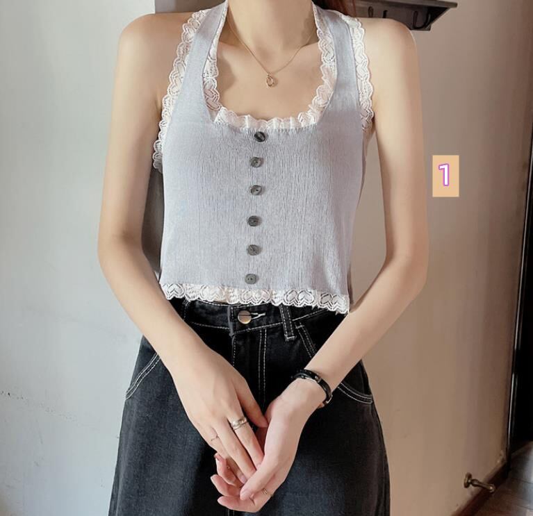 2022春夏新作 レディース 女 袖なし ニット トップス Tシャツ インナー キャミソール タンクトップ 3色