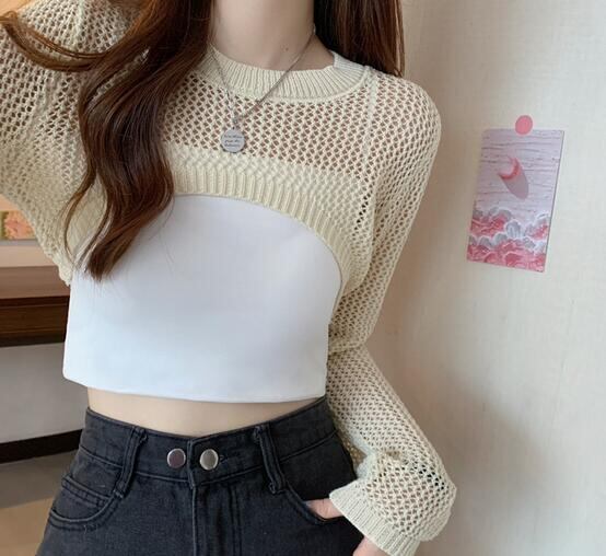 トップス・日焼け止め・个性・長袖シャツ・ブラウス・流行り・レディース服・透かし雕り