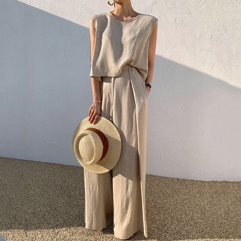 2024年夏新作 セットアップ レディース トップス ノースリーブ ロングパンツ ワイドパンツ ハイウエスト