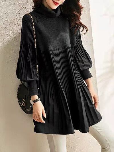 【2枚購入で 3oo円OFF】秋冬 ランタン袖 エレガント 気質 ニットトップス スリム見え ニットワンピースベーシックニット