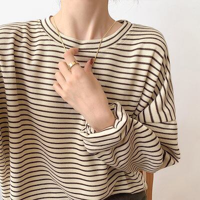 スウェット【2枚購入で 2oo円OFF】ボーダー柄 長袖 Tシャツ 秋 日韓 新作 丸ネック ゆったり 韓国ファッション アンダーウェア トップスロンTTシャツカットソー