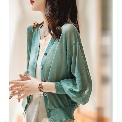 2024新作 気質 シンプル ブラウス トップス接触冷感 カーディガン ニットカーディガン 大きめサイズ 百掛け シアーシャツ uvカット