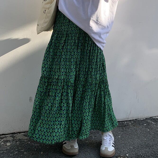 スカート レディース ボトムス ロングスカート ロンスカ ロング丈 ウエストゴム 花柄