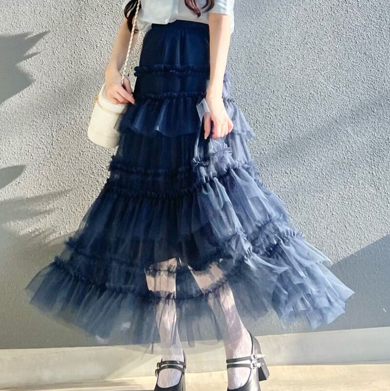 スカート レディース ロングスカート ボトムス メッシュスカート ウエストゴム Sweet 可愛い