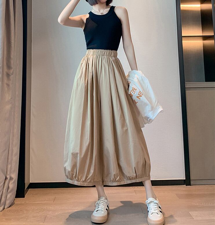 2024年夏新作 パンツ レディース ワイドパンツ ボトムス ボリュームパンツ リラックス ゆったり 9分丈