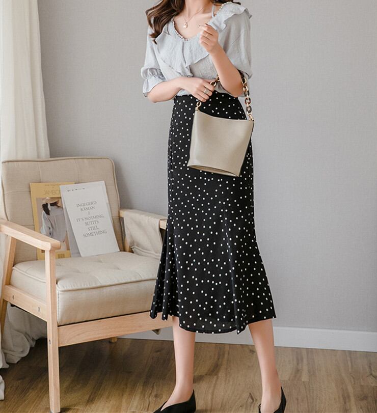 スカート ドット柄 ミディアム丈 ボトムス レディース 2024年夏新作 通勤 OL 気質