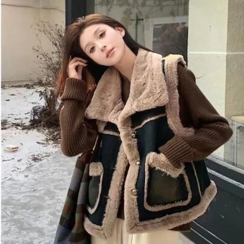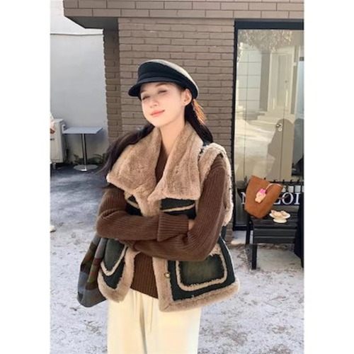 新作 裏起毛 厚手 ベスト 冬アウター ジャケットラムズウール シンプル ベスト ゆったり ノースリーブ 秋冬 AWアウター 韓国ファッション