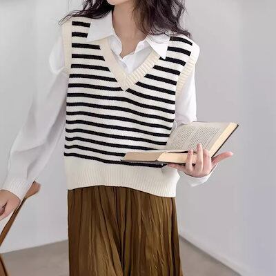 ボトムシャツ女性秋と冬の楊貴妃内ストライプウエストコート女性早期楊貴妃レディース老化気質トップスの外で着用することができます