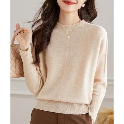 韓国ファッション秋冬人気カシミヤタッチ ニットトップス レディースニットセーター 百掛けトップス ニットインナーVネックベーシックニットゆったりスウェット 長袖 無地リブニット