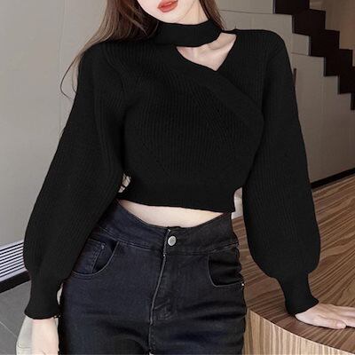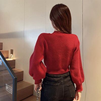 カシミヤタッチ ショート丈 ニットトップスレディース秋冬