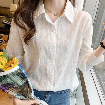 韓国ファッション コットンホワイトシャツ2024春秋の新作ゆったりトップスコットン 今っぽシアーシャツ 長袖 ブラウス レディース オフィス シャツ カーディガン