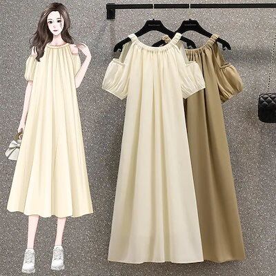 2024 夏 ワンピース 韓国ファッション ワンピース夏服 ドレス 肩出しセクシーワンピース フレンチスカート ロングワンピ