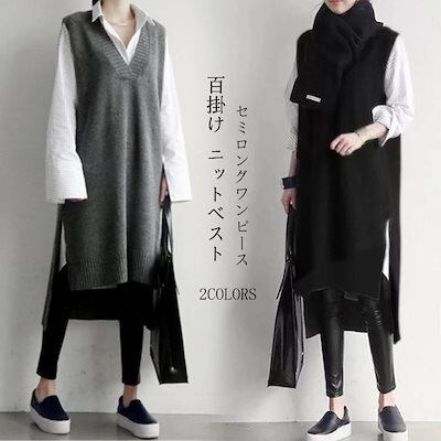 冬アウター ニット ベスト 韓国 ワンピース ins セーター ベストセミロング タンクトップ厚手セーターノースリーブワンピース