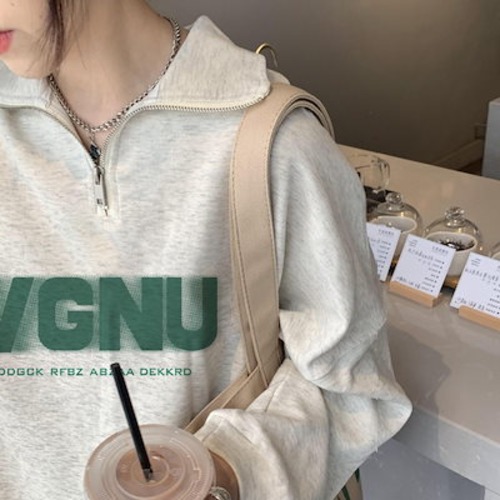 2024 秋冬 2TYPE 裹起毛トップス長袖 かわいいK-POPTロングレディース韓国風ロゴ衣装カラールーズゆったりカジュアルハーフおしゃれサイズスリーブシルエットファッション系サイドシャツフット