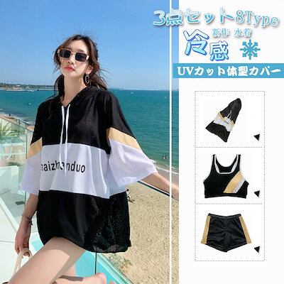 2024 人気 水着 レディース 体型カバー 露出控え 中学生 高校生 大学生 韓国 水着セット フィットネス 水着 スポーティー 3点セット セパレート タンキニ タンク ショートパンツ かわいい