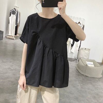 人気 夏 tシャツ カジュアル 綿麻 個性 半袖 ゆったり大きめサイズ Tシャツ ショット丈 トップス 着痩せ アウター レディースフ 韓国ファッション ロンt Tシャツ オフィス スポーツ