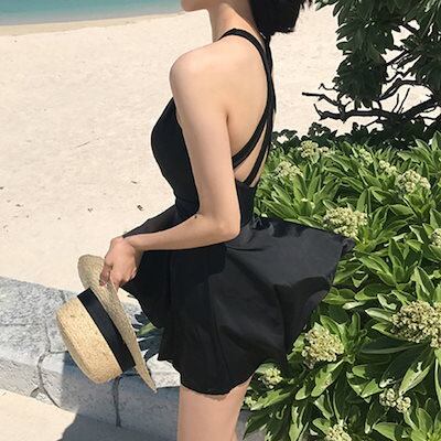 水着Swimwearワンピース型着痩せ水着バックレススカート