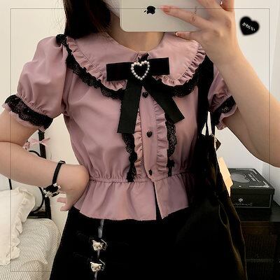 サンタコスプレ 地雷系 量産型 着痩せ レースレース 半袖 シャツ 可愛らしい ショット丈 トップス Lolitaインナーサンタコスプレ