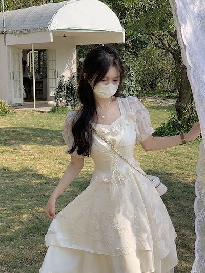 ロリータ コスプレ 2024 春夏 新作 着痩せ ティーブレイクドレス イレギュラー ラッフル ワンピース