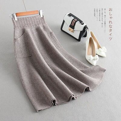 マキシスカート 秋 脚魅せミニスカート マーメイドスカート 夕イトスカ一トスカート ポケット付き ニット ニットスカート ウォーム