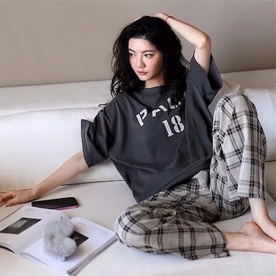 セットアップ ルームウェア 夏 新作 パジャマ レディース 半袖 ゆったり ホームウェア アウター チェック カジュアル セット涼しく楽ちんセットアップ 韓国ファッション