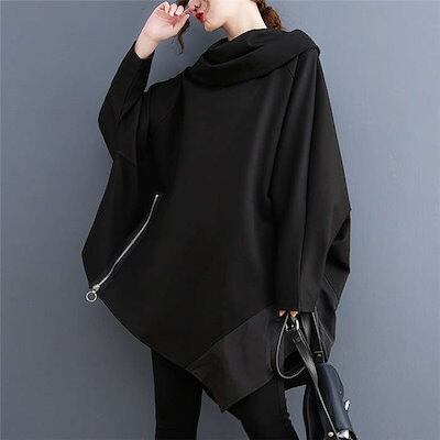 アシンメトリー パーカー レディース 秋冬 パーカーワンピース チュニック 大きめ ロングパーカー トレーナー ビッグパーカー スウェット アシンメトリーパーカ ゆったり ドルマンスリーブ 無地 韓国