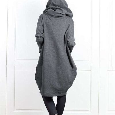 パーカー ロングパーカー トレーナー スウェット ファスナー フード付き フェイクレイヤード 春 秋 ジャケット オーバーサイズ 大きいサイズ ポケット ハイネック アウター カーディガン 原宿系 ジ