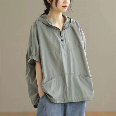 パーカー レディース 半袖 tシャツ 夏 ゆったり ビッグシルエット 薄手 綿 無地 スウェットフードパーカー トップス 半袖パーカー トレーナー おしゃれ フード付き プルオーバー 大きいサイズ 体