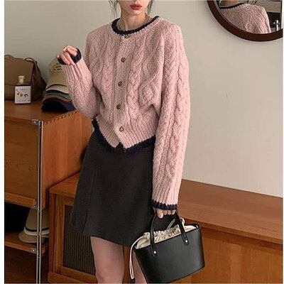 ニットカーディガン カーディガン レディース 春 秋 ニットガウン ケーブルニット トップス ニット セーター バイカラー ニットカーデ 羽織り 長袖 長そで 丸首カジュアル ニットカーデ 羽織り セ