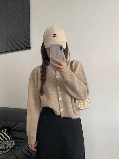 ニットカーディガン ニット レディース カーディガン 羽織り 無地 クルーネック 丸首 長袖 前開き カットソー セーター トップス 春秋 冬 お洒落 きれめ アウター シンプル カジュアル かわいい