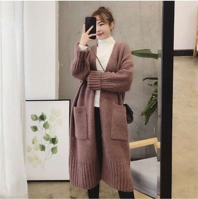 ニットカーディガン カーディガン ニット 羽織 ロングニット ロングカーディガン レディース トップス ゲーブル編み セーター 前開き ロングアウター シンプル コート カジュアル 体型カバー 可愛い
