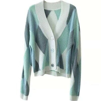 ニットカーディガン レディース 秋新作 配色 ニットソー セーター 幾何柄 通勤 コーディガン オシャレ 40代 大人 上品 可愛い 着痩せ トップス ゆったり アウター ニットソー おしゃれ 秋服