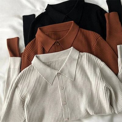 ニットカーディガン リブニット セーター レディース カーディガン ニット リブ カットソー ニットセーター 秋冬 長袖 無地 前開き 折襟 アウター 羽織 ゆったり 体型カバー カジュアル オフィス