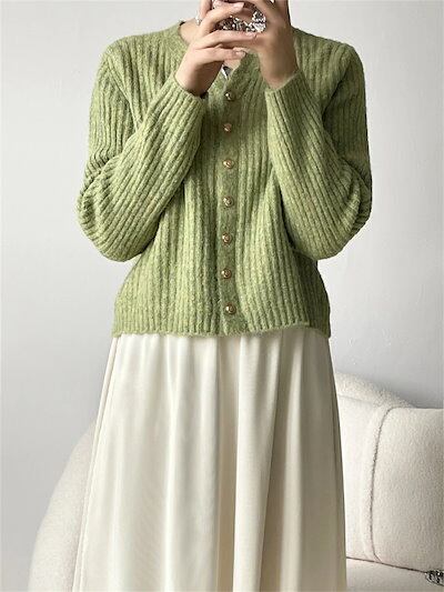 ニット カーディガン セーター カットソー レディース ニットカーディガン 秋冬 長袖 ニットセーター トップス クルーネック 丸首 前開き 羽織 無地 アウター カジュアル おしゃれ きれいめ 着?