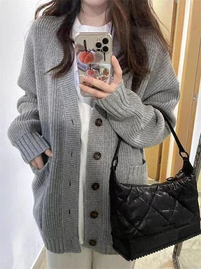 ニットカーディガン ニット カーディガン レディース ニットセーター セーター 秋冬 羽織 前開き Vネック 長袖 無地 ゆったり 体型カバー カットソー 着?せ 大人可愛い ボタン ニットカーデ 暖