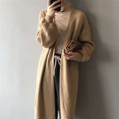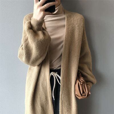 ニットカーディガン レディース ロング カーディガン レディース 秋冬 ニット カーディガン ボリューム袖 秋 トップス アウター コート 無地 ゆったり ロング シンプル 上品 可愛い 春 秋 長袖