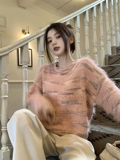 2024秋冬トップス 長袖 ニット セーター レディース ショート おしゃれ韓国ロンT色っぽ 女っぽスタンド 春カラースタイルアップハイカジュアルきれいめV大人ファッション加工フェミニン かわいい