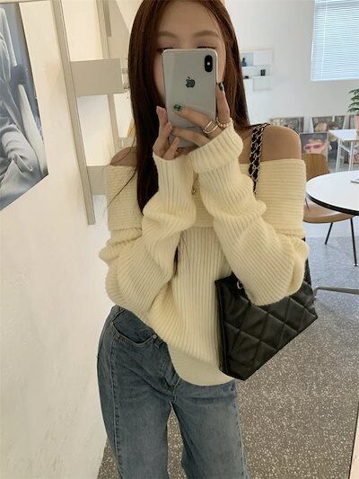 2024秋冬トップス 長袖 ニット レディースショートおしゃれ カラバリ肌見せカラーシンプルスタイルアッププル色っぽ 女っぽ カジュアル きれいめ 大人ネックファッション加工フェミニン秋冬春系