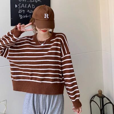 2024秋冬トップス カーディガン ニット セーター ラウンドネック メロウ襟 ボタン ハート 長袖 ボーダー柄 春 ゆったり 黒 赤 韓国ファッション レディース おしゃれ かわいい カジュアル お