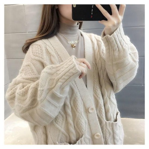 カーディガン レディース ニット カーデ 長袖 無地 前開き セーター きれいめ トップス カットソー カジュアル ゆったり おしゃれ 厚手 イベント