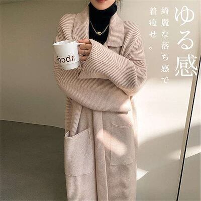 ロングカーディガン レディース カーディガン 秋 冬 厚手 長袖 ロング ニット 冬物 アウター ニットアウター コート 秋コート ロングコート ボリューム感 羽織り ルーズ きれいめ ゆったり 秋冬