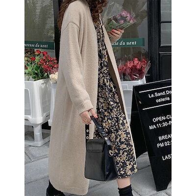 ロングカーディガン ニット コート アウター 羽織り 長袖 レディース 秋冬 前開き ゆったり 大人 エレガント フェミニン カジュアル シンプル 通勤 お洒落 きれいめ 20代 30代 40代