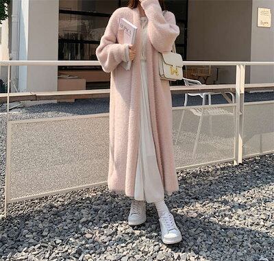 ロングカーディガン レディース 秋冬 長袖 厚手 カーディガン ロング丈 コート アウター 羽織り シャギー あったか シャギーニット アウター オフィス シンプル ゆったり おしゃれ かわいい ふん