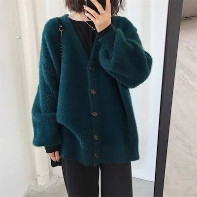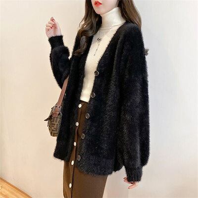 ニット カーディガン レディース シャギーニット ニット ロングカーディガン Vネック 前開き 羽織る 柔らかい ゆったり 秋冬 ニットセーター トップス もっちり アウター 体型カバー ふわふわ 人
