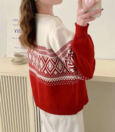 ノルディック カーディガン レディース 秋冬 ニット トップス ニットカーディガン ノルディック柄 丸首 大きめ 幾何学 アーガイル 前開き ニットカーデ アウター クルーネック ドロップショルダー