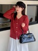 大きい符号の女装人形の気質の赤い外套女性の彩点セーター冬太ってmmニットのカーディガン