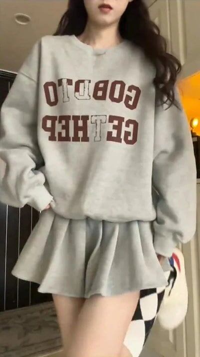 【本日限定】2点セット 長袖シャツ トップス ミニスカート ショート レディース あたたかい かわいい シルエット風きれいめサイズ秋冬ゆったり ファッションダブル