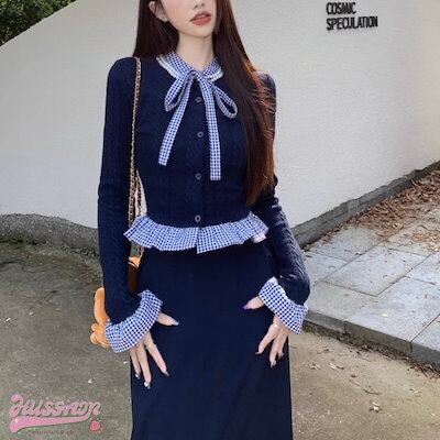【2点セット】貴方の視線を独り占めしたいわたしのコーデ カジュアル ショートトップス 長袖 ロングスカート ファッション ゆったり カジュアル フェミニン 色っぽ きれいめ 大人っぽ 秋冬フレンチ型